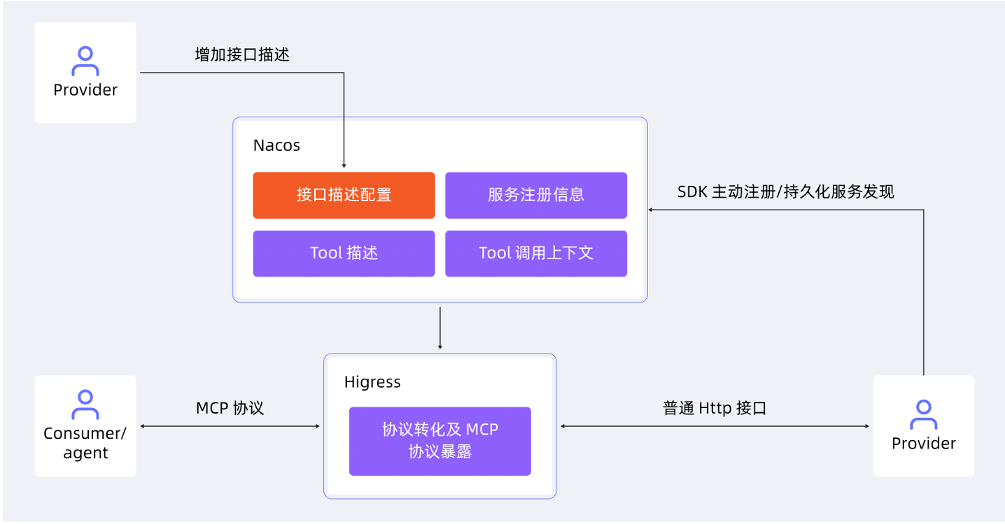 在这篇文章中,我将带你手把手完成从零开始的全套流程:部署并配置 Higress、将 REST API 自动映射为 MCP 工具,并使用 Nacos 作为 MCP Registry,实现 MCP 配置的统一管理与动态下发。